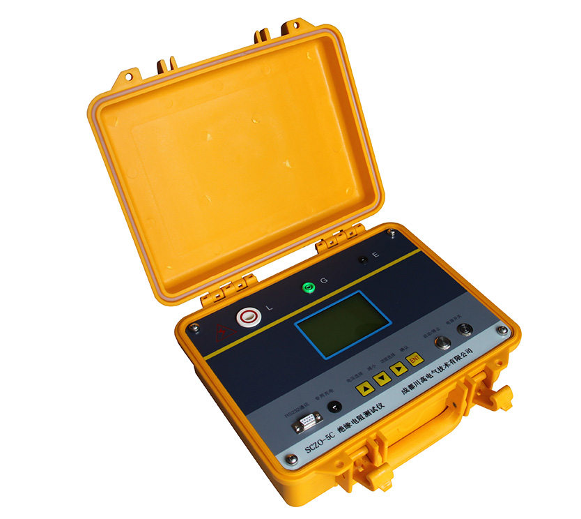 SCZO-5C絕緣電阻測(cè)試儀用于試驗(yàn)室或現(xiàn)場(chǎng)測(cè)量電纜、變壓器、電動(dòng)機(jī)、發(fā)電機(jī)等絕緣及繞組絕緣。內(nèi)含高精度微電流測(cè)量系統(tǒng)、數(shù)字升壓系統(tǒng)。只需要用一條高壓線和一條信號(hào)線連接試品即可測(cè)量。測(cè)量自動(dòng)進(jìn)行,結(jié)果由大屏幕液晶顯示,并將結(jié)果進(jìn)行存儲(chǔ)。