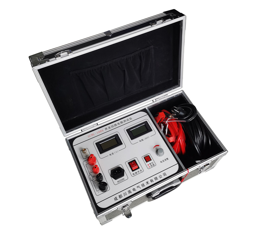 SCHL-100A型開關(guān)回路電阻測試儀(接觸電阻測試儀)采用先進(jìn)的大功率開關(guān)電源技術(shù)和先進(jìn)的電子線路精制而成。是高、低開關(guān)、電纜電線及焊縫接觸電阻的專用測試儀器。其電流采用國家標(biāo)準(zhǔn)GB763所推薦的100A直流,可在100A電流的情況下測得被試品的電阻值。本儀器采用雙液晶顯示屏阻值及電流值,克服了紅色數(shù)碼管顯示器在陽光下不便讀數(shù)的缺點(diǎn),具有體積小、重量輕、抗干擾能力強(qiáng)、精度高、操作方便、保護(hù)功能完善等特點(diǎn)。