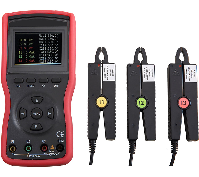 同時(shí)測(cè)量三相交流電壓、電流、電壓間相位、電流間相位、電壓電流間相位、頻率、相序、有功功率、無功功率、視在功率、功率因數(shù)、電流矢量和,判別變壓器接線組別、感性、容性電路,測(cè)試二次回路和母差保護(hù)系統(tǒng),讀出差動(dòng)保護(hù)各組CT之間的相位關(guān)系,檢查電度表的接線正確與否,檢修線路設(shè)備等 |
