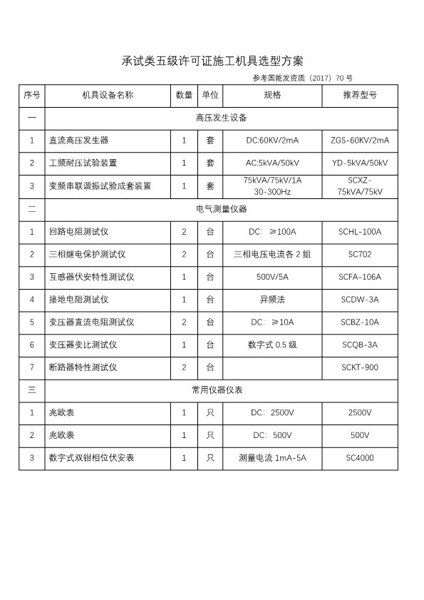 05.承試類一級許可 證施工機具選型方案(國 家能源局2017版通知)